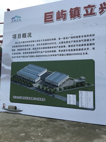 浙江立興建材科技有限公司成立于201812月,法人代表為何洪乖,注冊地址位于浙江省溫州市文成縣巨嶼鎮鎮中東路81號二樓,企業類型為有限責任公司,統一社會信用代碼:91330328MA2AQAEP2Y,經營范圍:蒸壓加氣混凝土板材、蒸壓加氣混凝土砌塊的研發、制造和銷售。(依法須經批準的項目,經相關部門批準后方可開展經營活動)